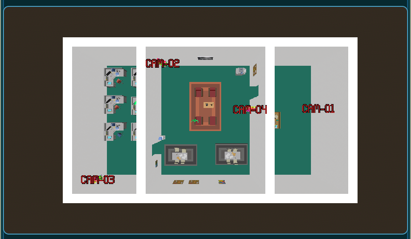 One new mechanic that I added in during development was the idea of camera shortcuts and jumping to them via an overhead map. Before, in order to jump from one camera to another, you had to have line of sight to the target camera. Now you also can jump to cameras that you’ve “marked”